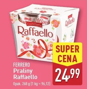 Zastanawiasz si臋, gdzie kupi膰 i ile kosztuje produkt Bombonierka Raffaello? Regularnie sprawdzamy, czy jest promocja na ten produkt w Biedronka, Lidl, Kaufland, Auchan, Netto, Makro i innych sklepach. Aktualnie posiadamy 5 ofert promocyjnych na ten produkt. Ceny zaczynaj膮 si臋 od z艂!