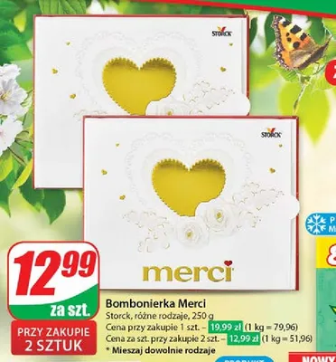 Nie wiesz gdzie kupi膰 produkt Bombonierka z sercem z艂otym Storck merci w promocji? Aktualnie produkt Bombonierka z sercem z艂otym Storck merci znajduje si臋 w atrakcyjnej cenie w sklepach Auchan, Dino, Kaufland, Carrefour, Carrefour Market, Aldi, Biedronka. Opr贸cz tego produkt mo偶na kupi膰 w innych sklepach, jednak aktulanie nie posiadamy informacji o promocjach w nich.