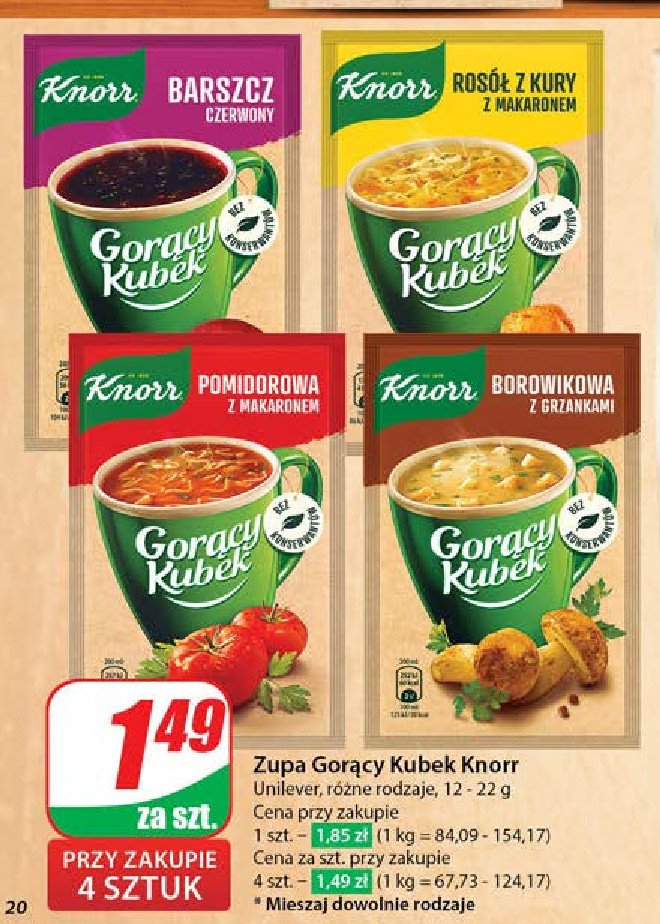 Ile kosztuje Borowikowa z grzankami Knorr gor膮cy kubek?
