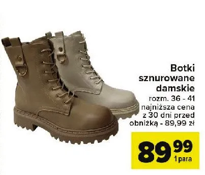 Zastanawiasz si臋, gdzie kupi膰 i ile kosztuje produkt Botki sznurowane damskie 36-41? Regularnie sprawdzamy, czy jest promocja na ten produkt w Biedronka, Lidl, Kaufland, Auchan, Netto, Makro i innych sklepach. Aktualnie nie posiadamy ofert promocyjnych na ten produkt.