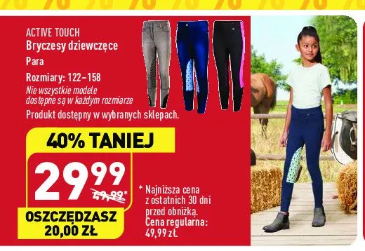 Zastanawiasz si臋, gdzie kupi膰 i ile kosztuje produkt Bryczesy dziewcz臋ce 122-158 Active touch kids? Regularnie sprawdzamy, czy jest promocja na ten produkt w Biedronka, Lidl, Kaufland, Auchan, Netto, Makro i innych sklepach. Aktualnie nie posiadamy ofert promocyjnych na ten produkt.