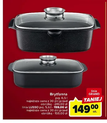 Cena produktu r贸偶ni si臋 w zale偶no艣ci od wybranego sklepu. Niestety nie posiadamy danych o aktualnych promocjach, jednak w艣r贸d archiwalnych ofert Brytfanna lusso 5.6 l kosztuje od 159 z艂.