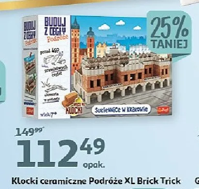 Cena produktu r贸偶ni si臋 w zale偶no艣ci od wybranego sklepu. Niestety nie posiadamy danych o aktualnych promocjach, jednak w艣r贸d archiwalnych ofert Buduj z ceg艂y - podr贸偶e Trefl kosztuje od 112,49 z艂.