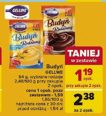 Cena produktu r贸偶ni si臋 w zale偶no艣ci od wybranego sklepu. Niestety nie posiadamy danych o aktualnych promocjach, jednak w艣r贸d archiwalnych ofert Budy艅 czekoladowy Gellwe kosztuje od 1,19 z艂 do 1,35 z艂.