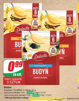 Cena produktu r贸偶ni si臋 w zale偶no艣ci od wybranego sklepu. Niestety nie posiadamy danych o aktualnych promocjach, jednak w艣r贸d archiwalnych ofert Budy艅 艣mietankowy Delecta kosztuje od 0,99 z艂 do 1,49 z艂.