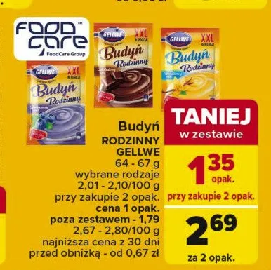 Cena produktu r贸偶ni si臋 w zale偶no艣ci od wybranego sklepu. Niestety nie posiadamy danych o aktualnych promocjach, jednak w艣r贸d archiwalnych ofert Budy艅 waniliowy Gellwe kosztuje od 1,35 z艂.