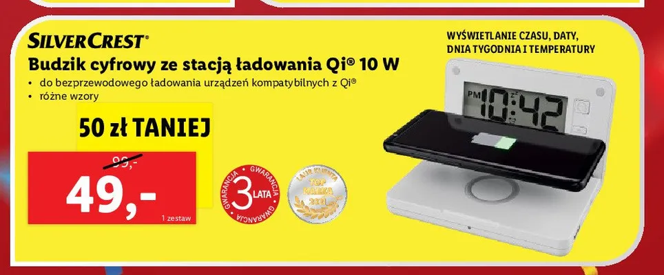 Ile kosztuje Budzik cyfrowy ze stacj膮 艂adowania Silvercrest?