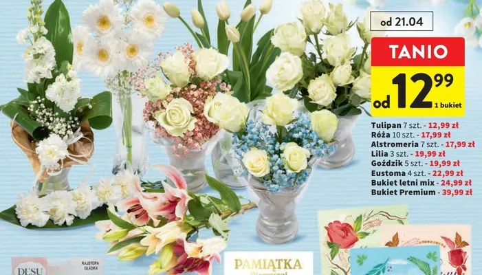 Zastanawiasz si臋, gdzie kupi膰 i ile kosztuje produkt Bukiet letni miks? Regularnie sprawdzamy, czy jest promocja na ten produkt w Biedronka, Lidl, Kaufland, Auchan, Netto, Makro i innych sklepach. Aktualnie nie posiadamy ofert promocyjnych na ten produkt.