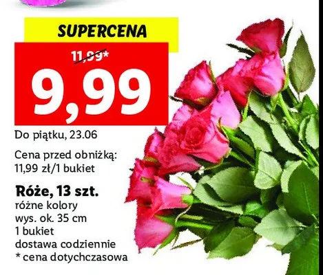 Cena produktu r贸偶ni si臋 w zale偶no艣ci od wybranego sklepu. Niestety nie posiadamy danych o aktualnych promocjach, jednak w艣r贸d archiwalnych ofert Bukiet r贸偶 35 cm kosztuje od 9,99 z艂 do 11,99 z艂.