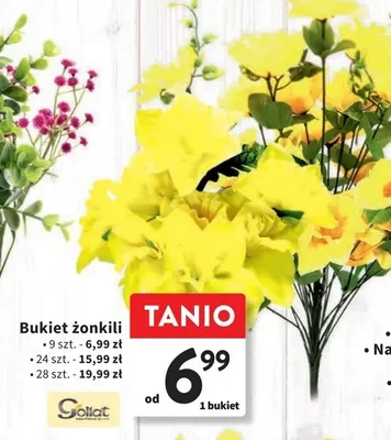 Cena produktu r贸偶ni si臋 w zale偶no艣ci od wybranego sklepu. Niestety nie posiadamy danych o aktualnych promocjach, jednak w艣r贸d archiwalnych ofert Bukiet 偶onkili 24 kwiaty kosztuje od 15,99 z艂.
