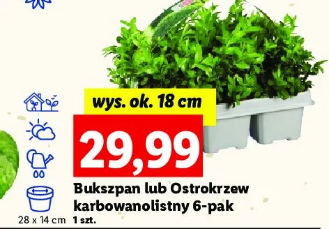 Zastanawiasz si臋, gdzie kupi膰 i ile kosztuje produkt Bukszpan? Regularnie sprawdzamy, czy jest promocja na ten produkt w Biedronka, Lidl, Kaufland, Auchan, Netto, Makro i innych sklepach. Aktualnie posiadamy 3 oferty promocyjne na ten produkt. Ceny zaczynaj膮 si臋 od 5,99z艂!