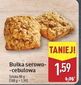 Cena produktu r贸偶ni si臋 w zale偶no艣ci od wybranego sklepu. Niestety nie posiadamy danych o aktualnych promocjach, jednak w艣r贸d archiwalnych ofert Bu艂ka serowa z cebul膮 kosztuje od 1,39 z艂 do 1,67 z艂.