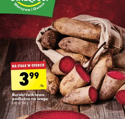 Cena produktu różni się w zależności od wybranego sklepu. Niestety nie posiadamy danych o aktualnych promocjach, jednak wśród archiwalnych ofert Buraki podłużne kosztuje od 1,99 zł do 3,99 zł.