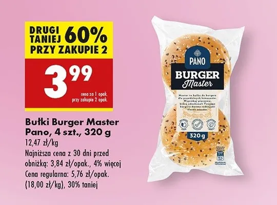 Cena produktu r贸偶ni si臋 w zale偶no艣ci od wybranego sklepu. Niestety nie posiadamy danych o aktualnych promocjach, jednak w艣r贸d archiwalnych ofert Burger master Pano kosztuje od 3,99 z艂 do 5,49 z艂.