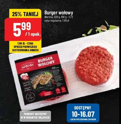 Cena produktu r贸偶ni si臋 w zale偶no艣ci od wybranego sklepu. Niestety nie posiadamy danych o aktualnych promocjach, jednak w艣r贸d archiwalnych ofert Burgery wo艂owe Z. M. WARMIA kosztuje od 5,99 z艂.