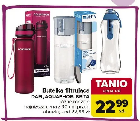 Cena produktu r贸偶ni si臋 w zale偶no艣ci od wybranego sklepu. Niestety nie posiadamy danych o aktualnych promocjach, jednak w艣r贸d archiwalnych ofert Butelka 500 ml + 1 wk艂ad Dafi kosztuje od 21,99 z艂 do 27,99 z艂.