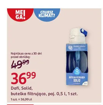 Cena produktu r贸偶ni si臋 w zale偶no艣ci od wybranego sklepu. Niestety nie posiadamy danych o aktualnych promocjach, jednak w艣r贸d archiwalnych ofert Butelka filtruj膮ca solid jeans 500 ml Dafi kosztuje od 36,99 z艂 do 44,99 z艂.
