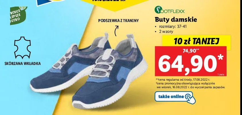 Zastanawiasz si臋, gdzie kupi膰 i ile kosztuje produkt Buty damskie 37-41 Footflexx? Regularnie sprawdzamy, czy jest promocja na ten produkt w Biedronka, Lidl, Kaufland, Auchan, Netto, Makro i innych sklepach. Aktualnie nie posiadamy ofert promocyjnych na ten produkt.