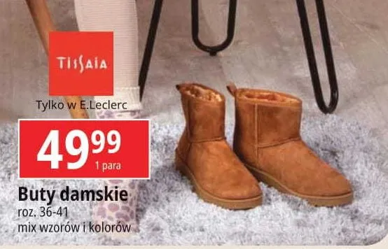 Cena produktu r贸偶ni si臋 w zale偶no艣ci od wybranego sklepu. Produkt Buty damskie rozm. 36-41 Tissaia mo偶esz kupi膰 w promocji ju偶 od 29,99 z艂. Najta艅sza oferta, jak膮 mamy w naszej bazie jest z sieci Leclerc. Buty damskie rozm. 36-41 Tissaia kosztuje aktualnie 29,99 z艂. Zobacz ofert臋