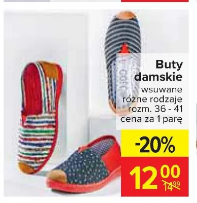 Zastanawiasz si臋, gdzie kupi膰 i ile kosztuje produkt Buty damskie wsuwane 36 - 41? Regularnie sprawdzamy, czy jest promocja na ten produkt w Biedronka, Lidl, Kaufland, Auchan, Netto, Makro i innych sklepach. Aktualnie nie posiadamy ofert promocyjnych na ten produkt.