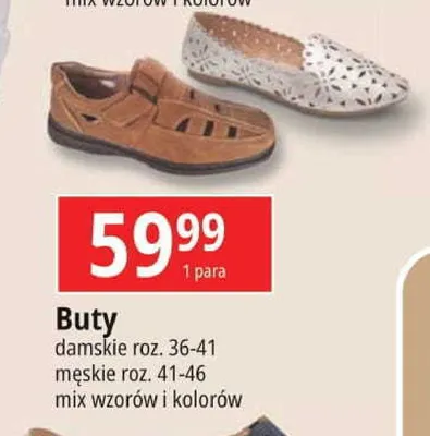 Cena produktu r贸偶ni si臋 w zale偶no艣ci od wybranego sklepu. Produkt Buty m臋skie 41-46 mo偶esz kupi膰 w promocji ju偶 od 69,9 z艂 do 79,9 z艂. Najta艅sza oferta, jak膮 mamy w naszej bazie jest z sieci Biedronka. Buty m臋skie 41-46 kosztuje aktualnie 69,9 z艂. Zobacz ofert臋