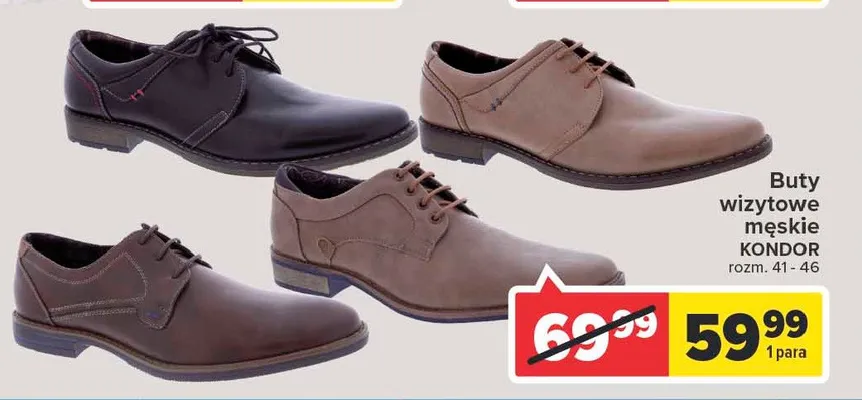 Cena produktu r贸偶ni si臋 w zale偶no艣ci od wybranego sklepu. Niestety nie posiadamy danych o aktualnych promocjach, jednak w艣r贸d archiwalnych ofert Buty m臋skie 41-46 Kondor kosztuje od 59,99 z艂.