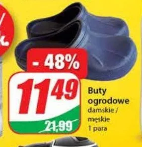 Cena produktu r贸偶ni si臋 w zale偶no艣ci od wybranego sklepu. Produkt Buty m臋skie ogrodowe mo偶esz kupi膰 w promocji ju偶 od 69,9 z艂 do 79,9 z艂. Najta艅sza oferta, jak膮 mamy w naszej bazie jest z sieci Biedronka. Buty m臋skie ogrodowe kosztuje aktualnie 69,9 z艂. Zobacz ofert臋