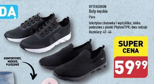 Zastanawiasz si臋, gdzie kupi膰 i ile kosztuje produkt Buty m臋skie rozm. 42-44 Up2fashion? Regularnie sprawdzamy, czy jest promocja na ten produkt w Biedronka, Lidl, Kaufland, Auchan, Netto, Makro i innych sklepach. Aktualnie nie posiadamy ofert promocyjnych na ten produkt.