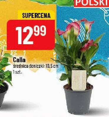 Zastanawiasz si臋, gdzie kupi膰 i ile kosztuje produkt Calla 10.5 cm? Regularnie sprawdzamy, czy jest promocja na ten produkt w Biedronka, Lidl, Kaufland, Auchan, Netto, Makro i innych sklepach. Aktualnie nie posiadamy ofert promocyjnych na ten produkt.