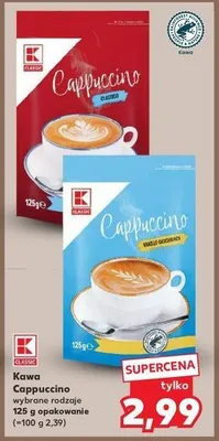 Cena produktu r贸偶ni si臋 w zale偶no艣ci od wybranego sklepu. Niestety nie posiadamy danych o aktualnych promocjach, jednak w艣r贸d archiwalnych ofert Cappuccino waniliowe K-classic kosztuje od 2,69 z艂 do 2,99 z艂.