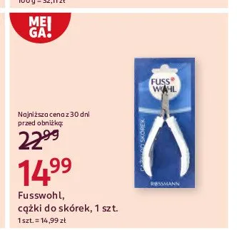 Cena produktu r贸偶ni si臋 w zale偶no艣ci od wybranego sklepu. Niestety nie posiadamy danych o aktualnych promocjach, jednak w艣r贸d archiwalnych ofert C膮偶ki do sk贸rek Fusswohl kosztuje od 12,99 z艂 do 18,49 z艂.