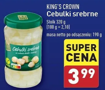 Cena produktu r贸偶ni si臋 w zale偶no艣ci od wybranego sklepu. Niestety nie posiadamy danych o aktualnych promocjach, jednak w艣r贸d archiwalnych ofert Cebulka srebrna King's crown (aldi) kosztuje od 3,99 z艂.