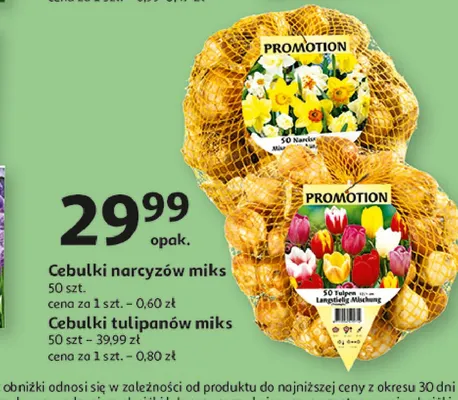 Zastanawiasz si臋, gdzie kupi膰 i ile kosztuje produkt Cebulki tulipan贸w miks? Regularnie sprawdzamy, czy jest promocja na ten produkt w Biedronka, Lidl, Kaufland, Auchan, Netto, Makro i innych sklepach. Aktualnie nie posiadamy ofert promocyjnych na ten produkt.