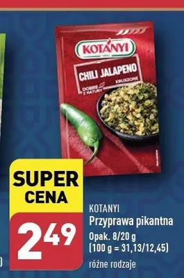 Cena produktu r贸偶ni si臋 w zale偶no艣ci od wybranego sklepu. Niestety nie posiadamy danych o aktualnych promocjach, jednak w艣r贸d archiwalnych ofert Chili jalopeno kruszone Kotanyi kosztuje od 2,49 z艂.