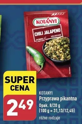 Cena produktu r贸偶ni si臋 w zale偶no艣ci od wybranego sklepu. Niestety nie posiadamy danych o aktualnych promocjach, jednak w艣r贸d archiwalnych ofert Chili jalopeno kruszone Kotanyi kosztuje od 2,49 z艂.