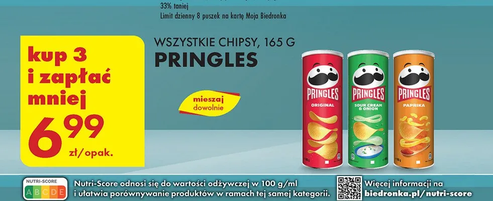 Zastanawiasz si臋, gdzie kupi膰 i ile kosztuje produkt Chipsy cheese & sour cream Pringles? Regularnie sprawdzamy, czy jest promocja na ten produkt w Biedronka, Lidl, Kaufland, Auchan, Netto, Makro i innych sklepach. Aktualnie posiadamy 7 ofert promocyjnych na ten produkt. Ceny zaczynaj膮 si臋 od z艂!