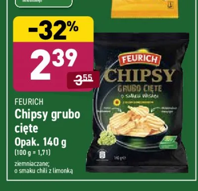 Ile kosztuje Chipsy grubo ci臋te o smaku chili z limonk膮 Feurich?