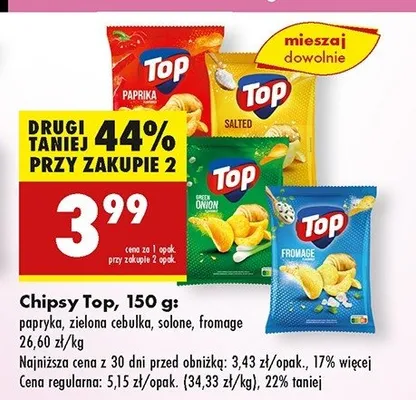 Ile kosztuje Chipsy o smaku 艣mietany z cebul膮 Top chips Top (biedronka)?