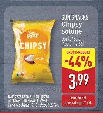 Przegl膮daj oferty promocyjne na produkt Chipsy solone SUN SNACKS