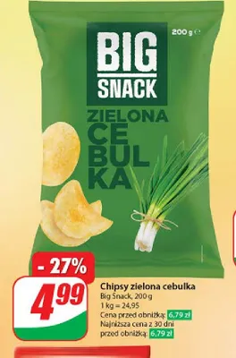 Chipsy zielona cebulka Big snack promocje w sklepach - znajd藕 ofert臋 dla siebie!