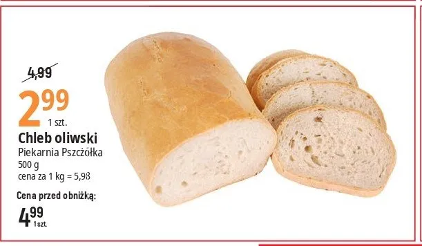 Zastanawiasz si臋, gdzie kupi膰 i ile kosztuje produkt Chleb oliwski krojony Piekarnia pszcz贸艂ka? Regularnie sprawdzamy, czy jest promocja na ten produkt w Biedronka, Lidl, Kaufland, Auchan, Netto, Makro i innych sklepach. Aktualnie posiadamy 2 oferty promocyjne na ten produkt. Ceny zaczynaj膮 si臋 od 2,99z艂!