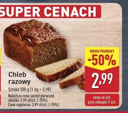 Cena produktu r贸偶ni si臋 w zale偶no艣ci od wybranego sklepu. Niestety nie posiadamy danych o aktualnych promocjach, jednak w艣r贸d archiwalnych ofert Chleb razowy kosztuje od 2,99 z艂.