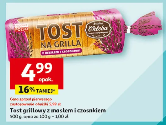 Gdzie mo偶na tanio kupi膰 produkt Chleb tostowy na grilla z mas艂em i czosnkiem?