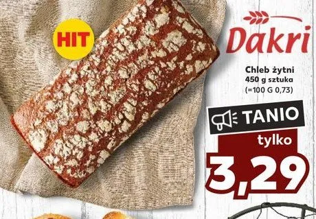 Zastanawiasz si臋, gdzie kupi膰 i ile kosztuje produkt Chleb zytni Dakri? Regularnie sprawdzamy, czy jest promocja na ten produkt w Biedronka, Lidl, Kaufland, Auchan, Netto, Makro i innych sklepach. Aktualnie posiadamy 1 ofert臋 promocyjn膮 na ten produkt. Ceny zaczynaj膮 si臋 od 3,29z艂!