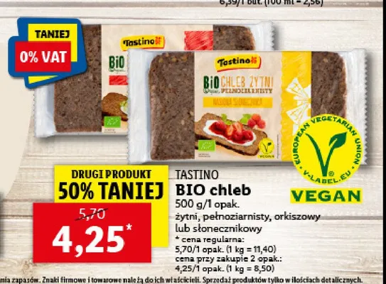 Ile kosztuje Chleb żytni słonecznikowy bio Tastino?