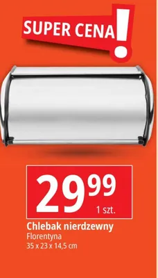 Cena produktu r贸偶ni si臋 w zale偶no艣ci od wybranego sklepu. Niestety nie posiadamy danych o aktualnych promocjach, jednak w艣r贸d archiwalnych ofert Chlebak nierdzewny Florina (florentyna) kosztuje od 29,99 z艂.