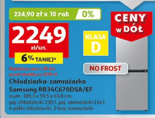 Cena produktu różni się w zależności od wybranego sklepu. Produkt Chłodziarko-zamrażarka rb34c670dsa/ef Samsung możesz kupić w promocji już od 1299 zł do 2299 zł. Najtańsza oferta, jaką mamy w naszej bazie jest z sieci kakto.pl. Chłodziarko-zamrażarka rb34c670dsa/ef Samsung kosztuje aktualnie 1299 zł. Zobacz ofertę