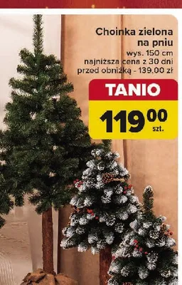 Cena produktu r贸偶ni si臋 w zale偶no艣ci od wybranego sklepu. Niestety nie posiadamy danych o aktualnych promocjach, jednak w艣r贸d archiwalnych ofert Choinka na pniu 150 cm kosztuje od 99 z艂 do 129 z艂.