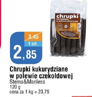 Cena produktu r贸偶ni si臋 w zale偶no艣ci od wybranego sklepu. Produkt Chrupki kukurydziane o smaku czekoladowym mo偶esz kupi膰 w promocji ju偶 od 1,99 z艂. Najta艅sza oferta, jak膮 mamy w naszej bazie jest z sieci 呕abka. Chrupki kukurydziane o smaku czekoladowym kosztuje aktualnie 1,99 z艂. Zobacz ofert臋