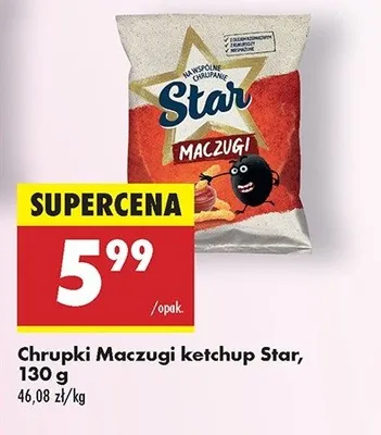 Cena produktu r贸偶ni si臋 w zale偶no艣ci od wybranego sklepu. Niestety nie posiadamy danych o aktualnych promocjach, jednak w艣r贸d archiwalnych ofert Chrupki maczugi Star Frito lay star kosztuje od 1,84 z艂 do 5,99 z艂.